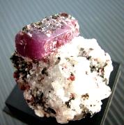 富山県東砺波郡利賀村高沼方解石上のルビー結晶 21x14mm