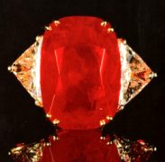 写真の15.97カラットのルビーは1988年、ニューヨークのサザビーズのオークションにて363万ドルという、色石としては史上最高の値がつけられたビルマ産の最高級品です。