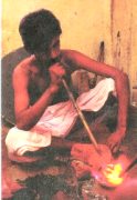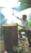 この操作は加熱の温度と時間の調整により、炭や薪、ガス等の燃焼による水分や一酸化炭素、水素分の酸化と還元作用が微妙な加減で行なわれることで、不純物の除去や、結晶内への適度な拡散をコントロールするものです。