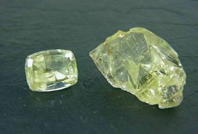 確認のために冒頭の写真の5個のルースと淡黄色の結晶を調べてみました ;