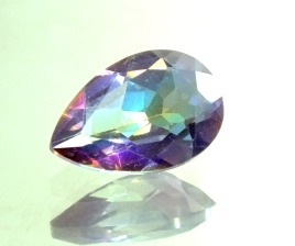 これは、研磨ではなく、ペアカットされたルースの表面に金属イオンを蒸着させる、スパッターリングという処置で着色したルースです。