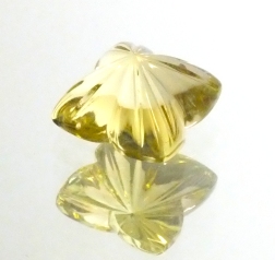 写真の黄水晶は複雑な加工がされているように見えますが、実は花弁のようにカットして、背面に8本の溝を切っただけの、比較的単純な処理がされているだけです。