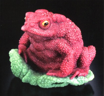 腕に自慢のカッター達が仕上げるのは、赤と緑の配色を巧みに組み合わせた彫刻ですが、どういうわけか、ヒキガエル、トカゲ、ネズミ等々、見事な仕上げではありますが、飾って眺めたくない様な動物が選ばれる例をよく見かけます。