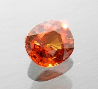 Although the deposit was exhausted by end of 1990s, the name, mandarin was followed by new spessartines with pure orange color, found in other African countries. The 1.98ct stone is a Namibian spessartine, quite pretty and transparent. But it is not mandarin garnet from Knene river, but from other new deposit due its reddish color and high R.I. of 1.808.